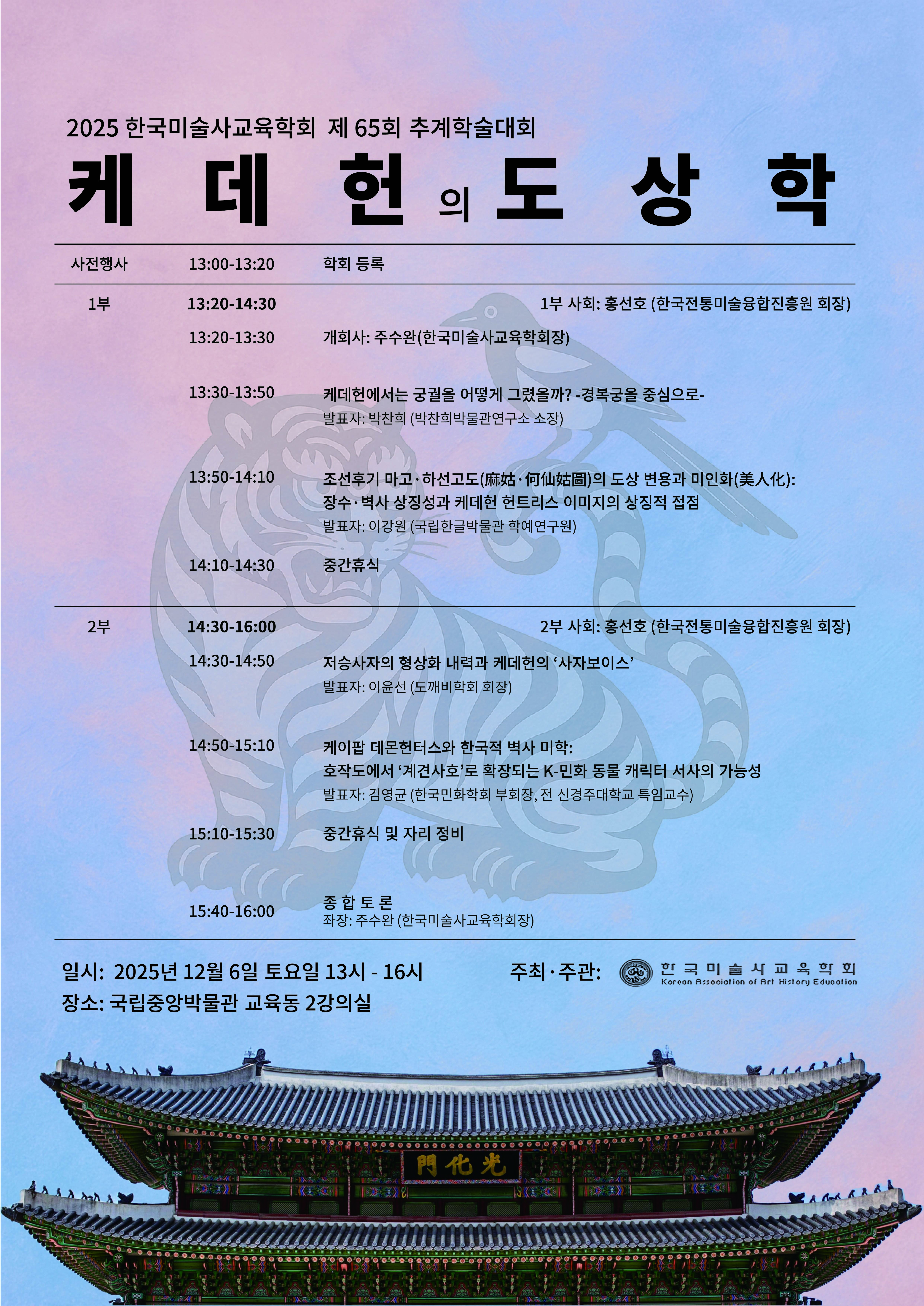 한국미술사교육학회는 12월 6일 국립중앙박물관 교육동 제2강의실에서 제65회 추계학술대회를 개최합니다.